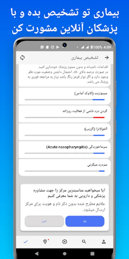 - Enter the symptoms of your illness or those of your loved ones and see the possibility of various diseases may have