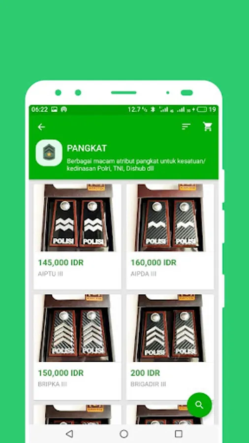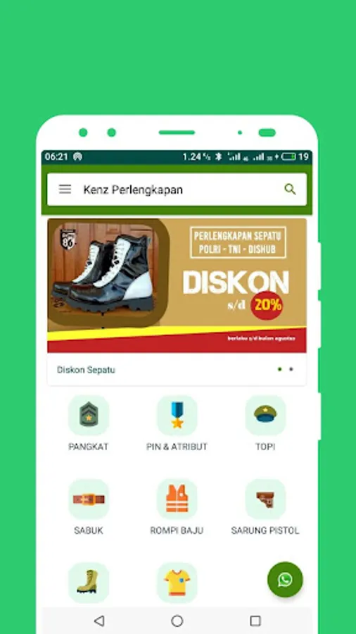 The Kenz application sells all official equipment for the Police, TNI and Dishub. All necessities from attributes, Badges, Ranks, Hats, Belts and Shoes