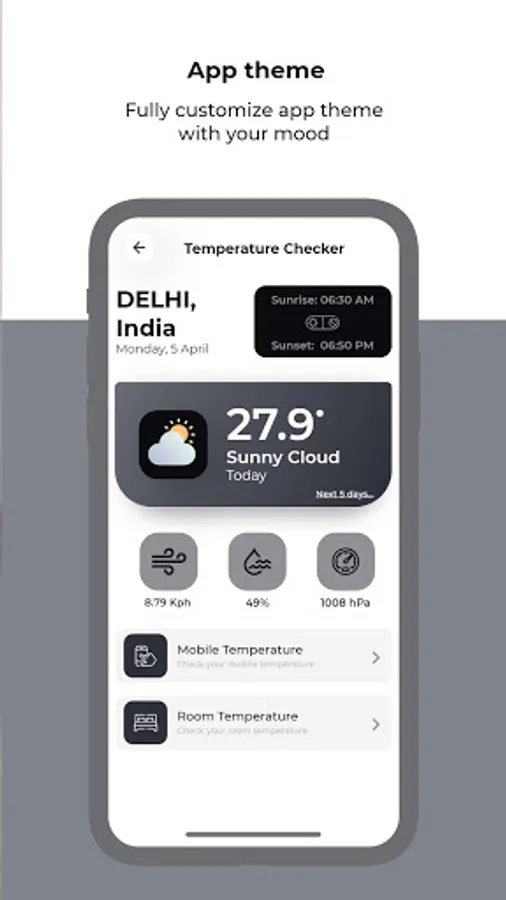 Temperature checker helps you to get temperature of room, phone and wether forecast of your environment.