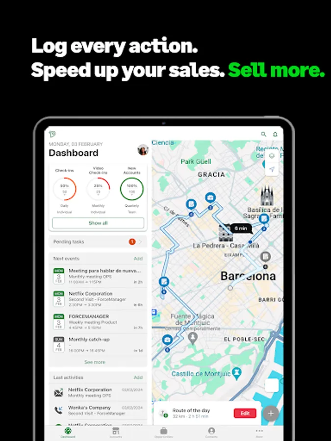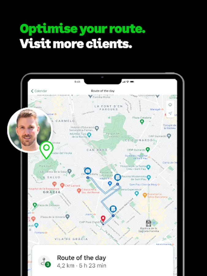 - Sales route: Sync your calendar with the app and plan the ideal sales route for each day.