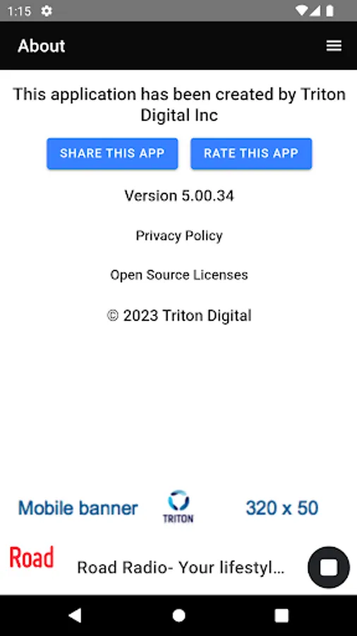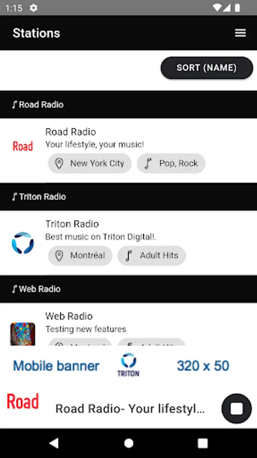 Triton Radio serves as a demo application for our clients with an active radio stream, player controls and a full feature set including additional 'now playing' information, song history, station list, sharing options, news, local weather and alarm settings..
