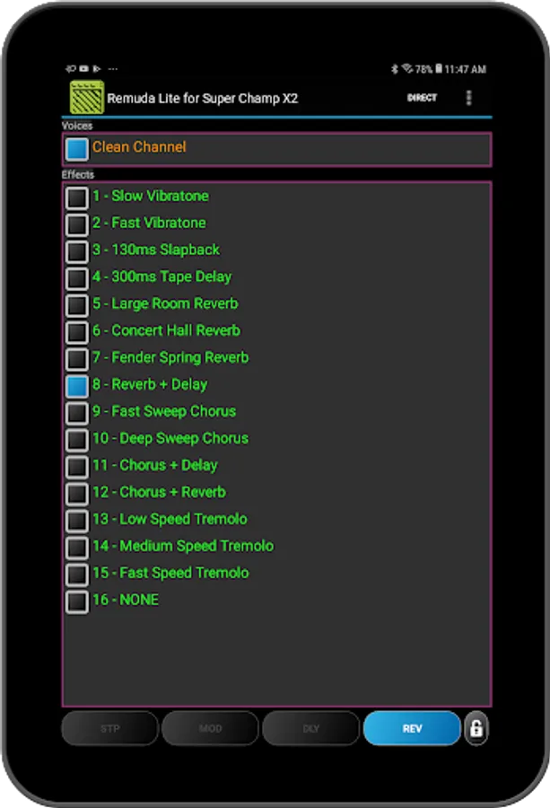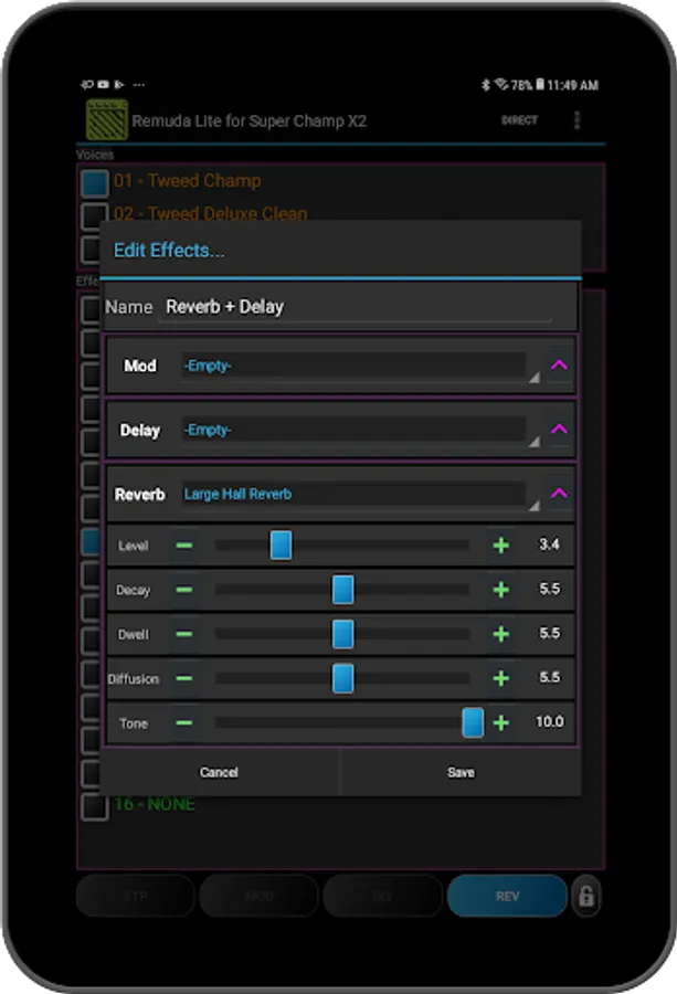 At last! An Android App that lets you use your phone or tablet to control and edit your Fender® Super Champ™ X2. Remuda/SC provides essential control and editing functions for all Voices and Effects using a clean and understandable screen layout that is suitable for live performance or rehearsal.