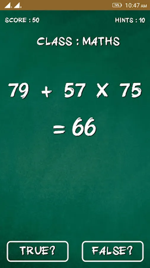 Best free math practice game for everyone. Improve your mathematics with simple True False answer.