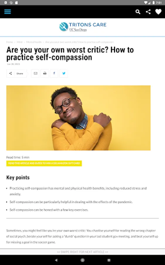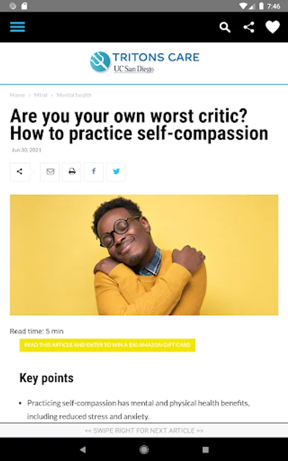 This is Tritons Care UC San Diego, the wellness app that’ll give you an insider, evidence-based info on living your best student life. Our tips are research-based, engaging, expert-backed, and student-approved, so you can read, watch,