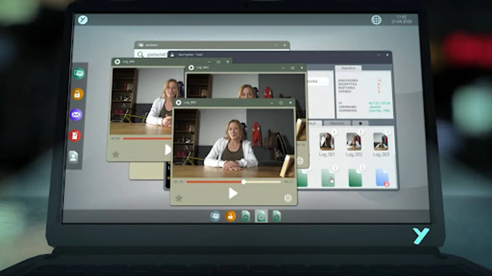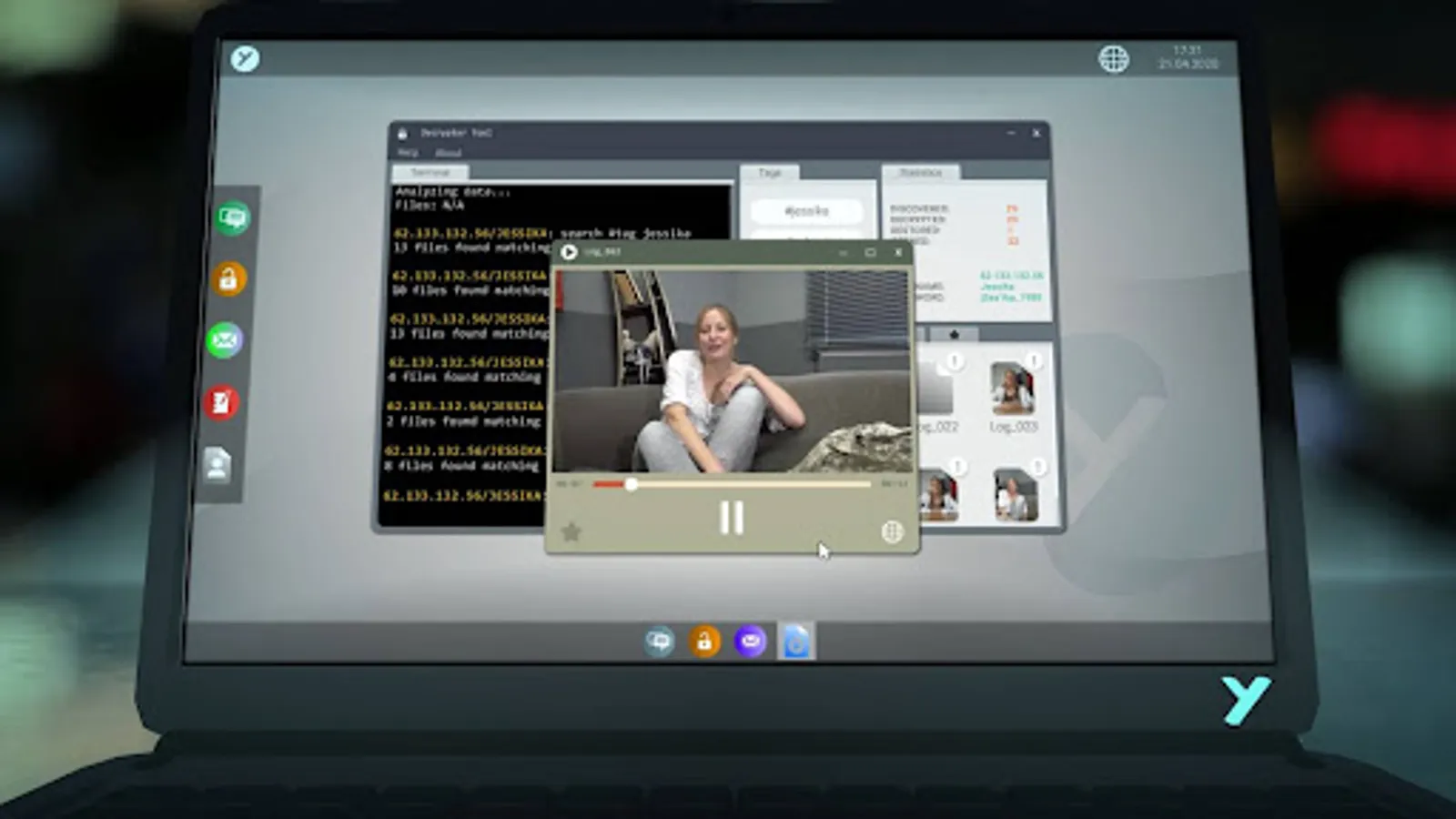 All you need is your laptop and some basic background info about the “victim” – in this case it’s all about Jessika. Access her database and browse her files by typing different search terms. These will give you access to video clips, audio files, notes, and news articles. Share those with the client and your colleagues to dig even deeper. Use your savvy and combine the facts to unfold the true story of Jessika.