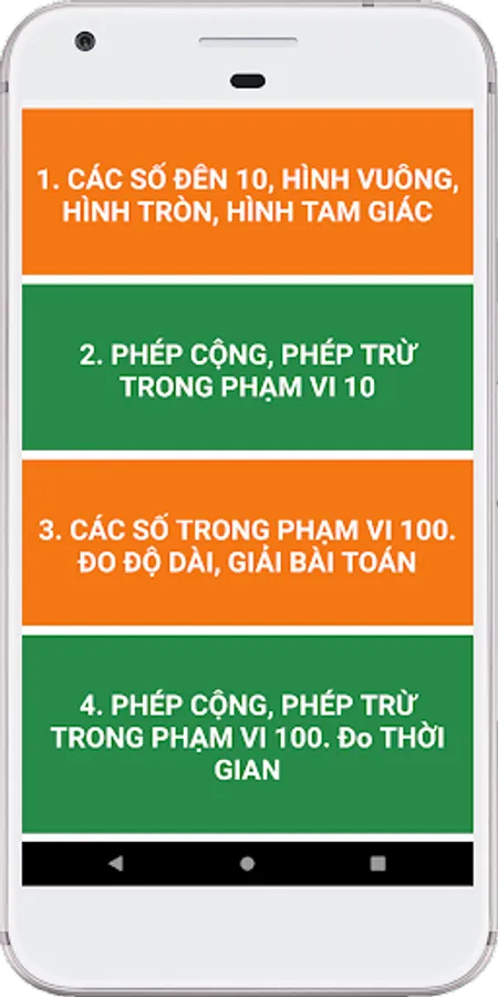 Math 1 software simulates the math curriculum according to the textbook. Math 1 is compiled according to the book series of the Ministry of Education and Training.