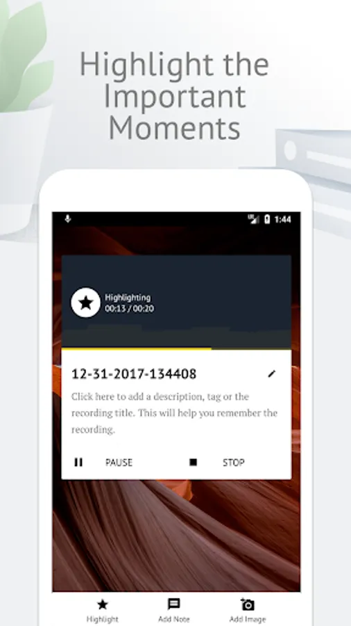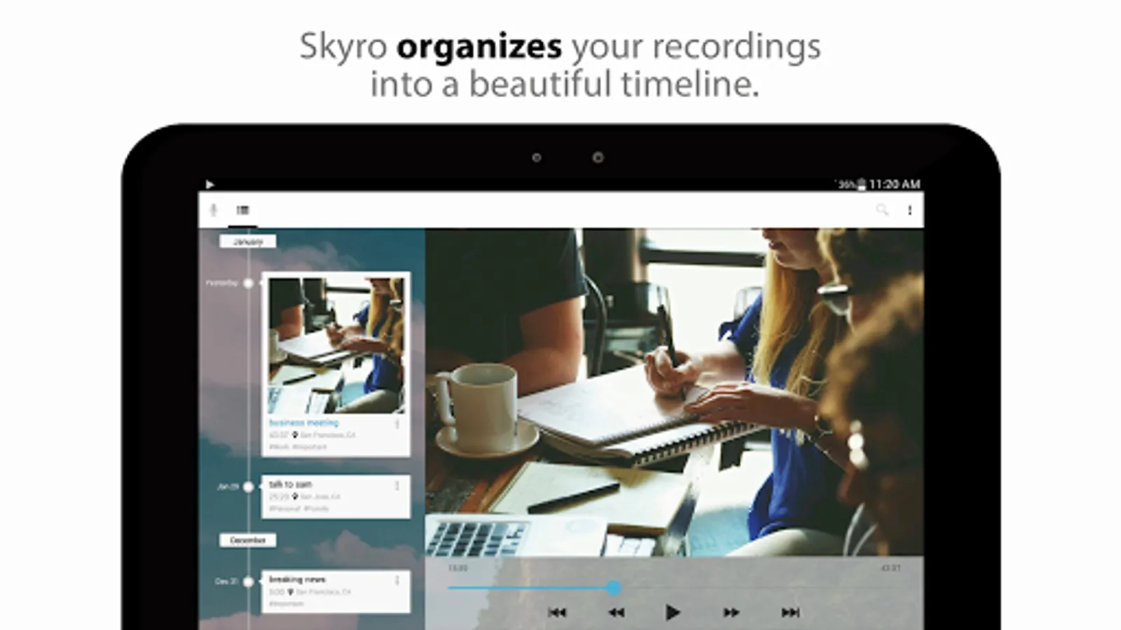 Meetings: It is the best voice recorder to be used as a business meeting recorder. Take photos of presentations, whiteboard sessions or notes during the meeting & they will be synced to the recording.