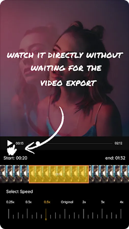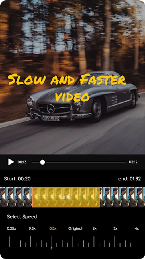 ✔️ Create smooth slow motion videos with speed settings that can be up to 4 times slower or faster than the original video