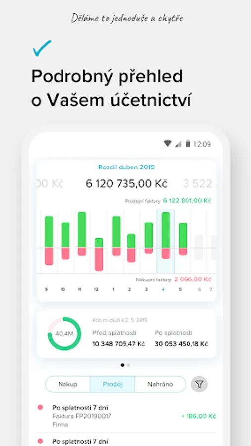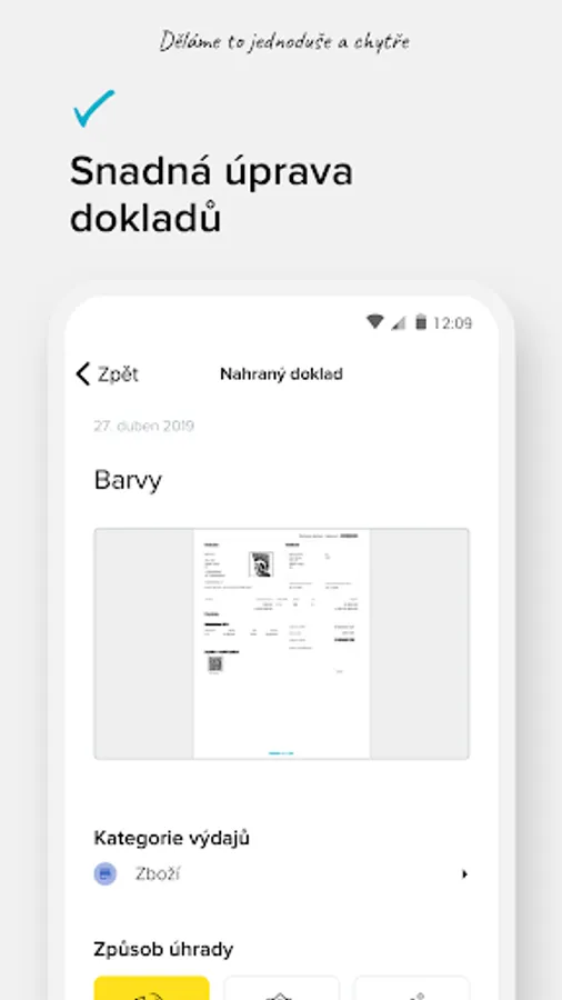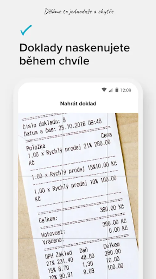 With our application, you can record or manage your papers for a few clicks - simply wherever and whenever it suits you. Within seconds, you can capture or record the document, choose the category, the method of payment, and it is done. You can easily and quickly manage your documents at a glance. Of course, we immediately transfer the documents to our portal.