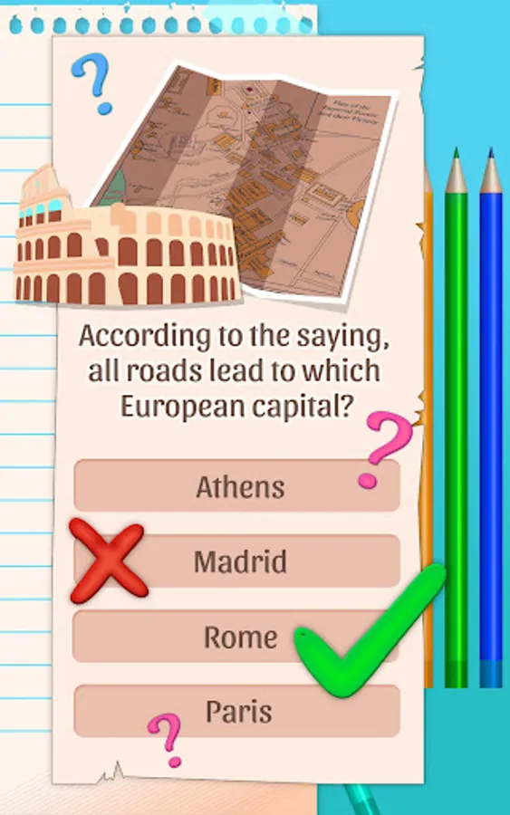 Test your knowledge on a variety of subjects as well as your general awareness on current affairs with an entertaining but demanding free knowledge test app. Play and learn so many interesting fun facts about a variety of areas – geography, history, science, famous people and characters, discoveries, literature, songs, TV series and many more.