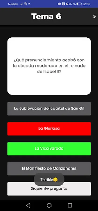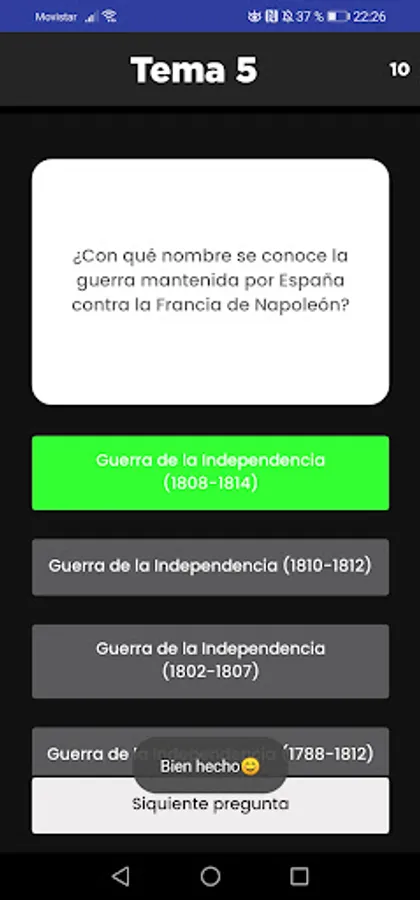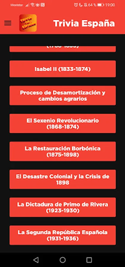 You have questions that span unmemorable times spanning times like those from Napoleon to Franco. Each topic has a number of questions from different timelines from Spain to the present.