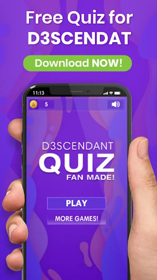 - It is very important that you know that the "Quiz for Descendants - Guess the character" application is not an official application (Made by FAN), this application is only for users to test their knowledge about Descendants (owned by Diisney) and guess the questions.