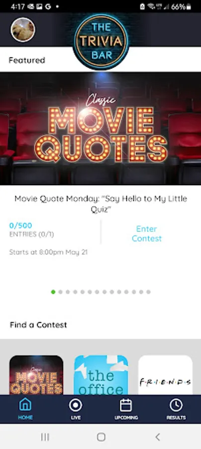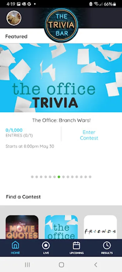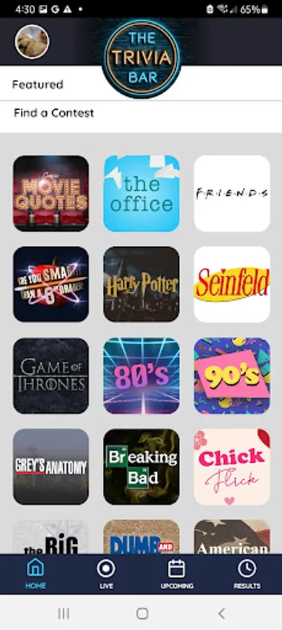 The Trivia Bar brings the fun of a bar trivia night to the palm of your hand! Our categories include the most binge-worthy TV shows, cult classic movies, 80's and 90's music, pop culture and more! Play in our featured contests agains hundreds or even thousands, play head to head against a friend, or in a small field contest. Once you sign up, click "interested" in all of your favorite categories and we'll notify you when an interested category has an event!