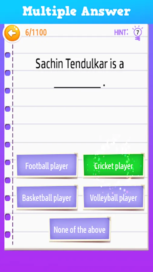 In this game, you need to give an answer and you can go to the next question. In this game hints also help you for showing the right answer.