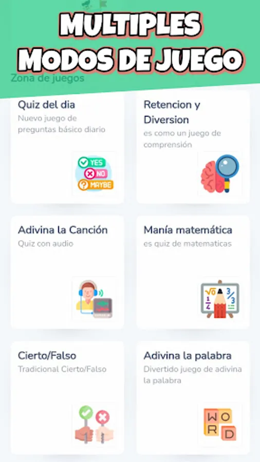 - Multiple categories of question and answer games: History, Geography, Sports, General Culture, Film and TV, Elementary Questions, Animal Kingdom and many more.