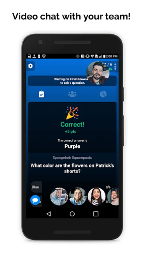 Play in virtual trivia events where you group video chat with your team while you watch the host. You can even jump on the virtual stage to join your host!