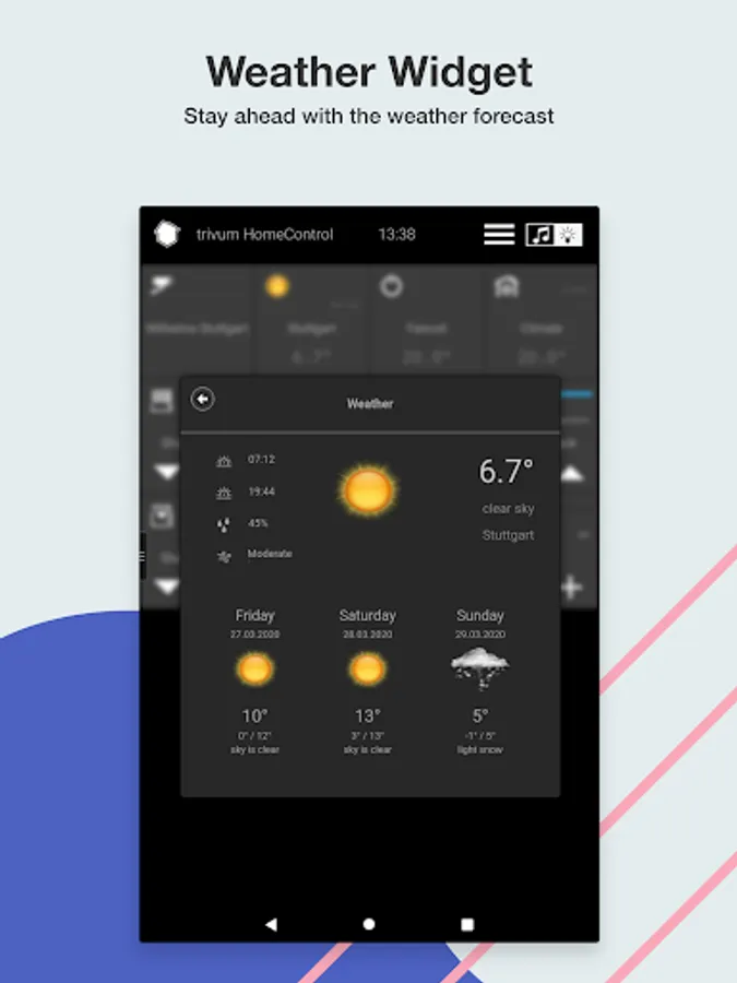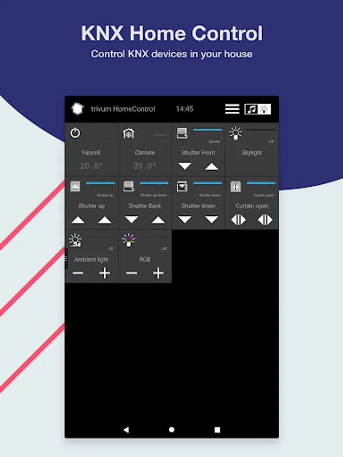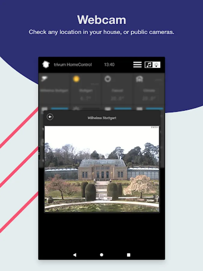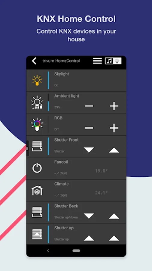 By using the app, you can control the entire KNX house, display webcams and also display weather information. You can easily configure all of this yourself.