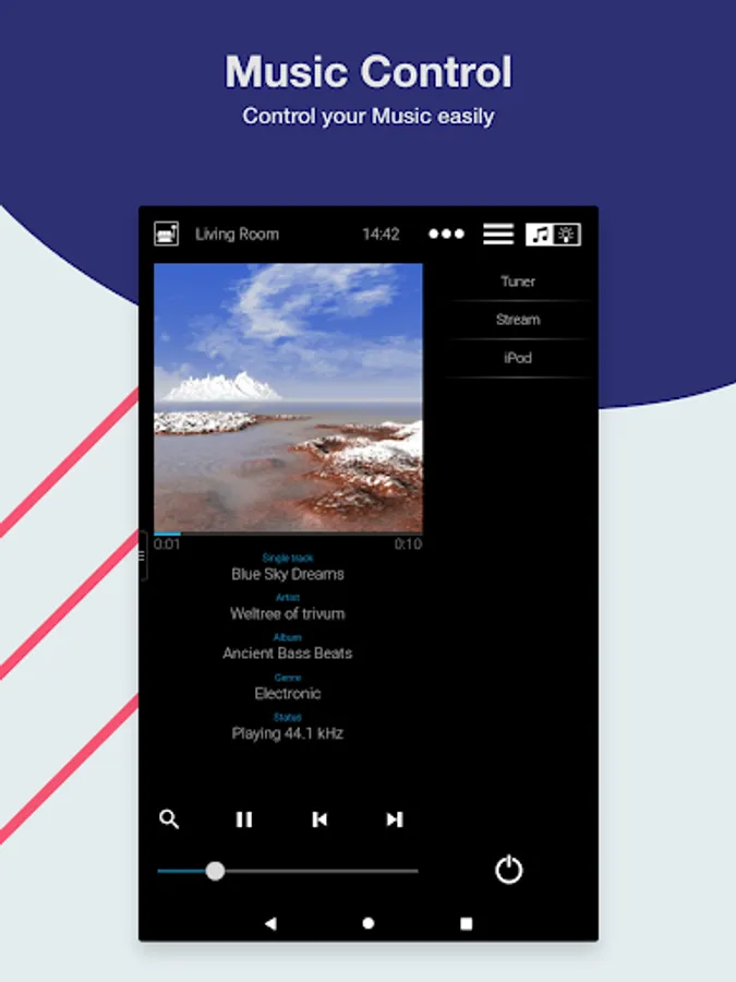 With the app you navigate intuitively in your music - be it Spotify, Tidal, Qobuz, Deezer, WebRadios or FM / DAB +. Everything looks modern and goes quickly. The app allows you to group rooms, wake you up in the morning with music, sound settings - just everything you can expect from a modern music system.