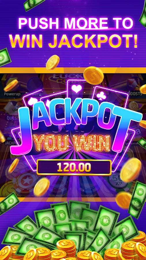 Unlock the casino-themed pusher to win big with the slot machine!