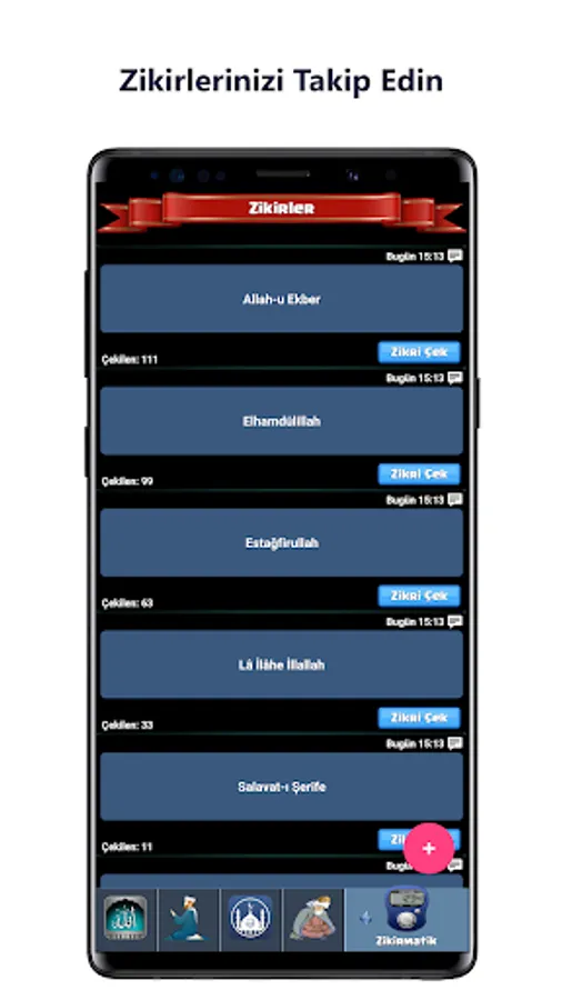 • In the Zikirmatik section you can add multiple dhikr for yourself and you can feel the difference of real zikirmatik.