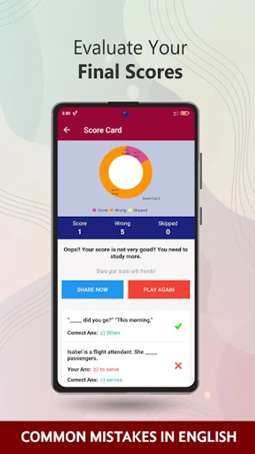 ✔️ This common mistakes in English app you can use in offline and online mode so that your error in English grammar reduces consequently.
