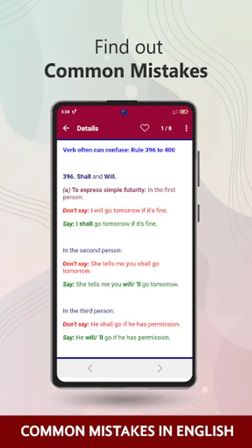 ✔️ This Common mistakes in English app works as grammar mistake finder, grammar mistake checker, and writing mistakes checker so that you can remove your basic error in English while you try to write and speak. English writing mistakes can bring a frustrating result in your competitive exam. So, this common error in the English app can be a brilliant companion for you to overcome this situation.