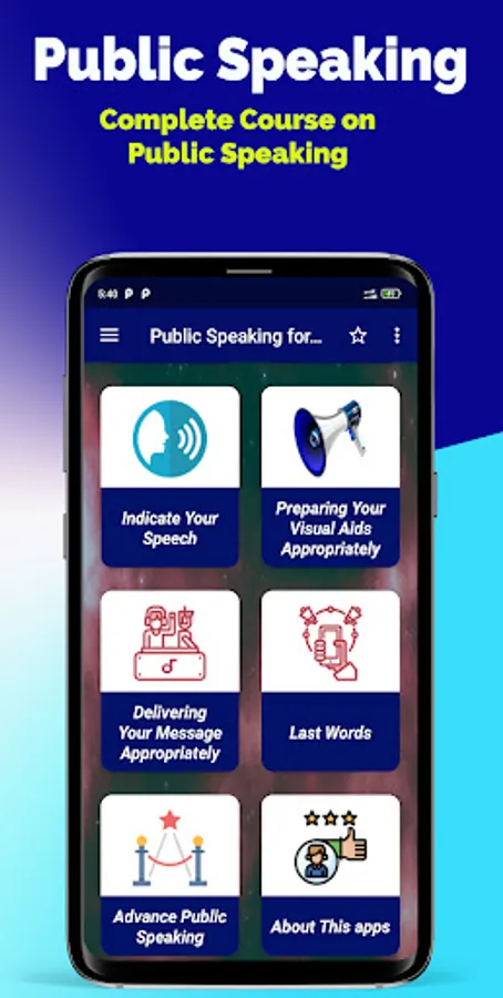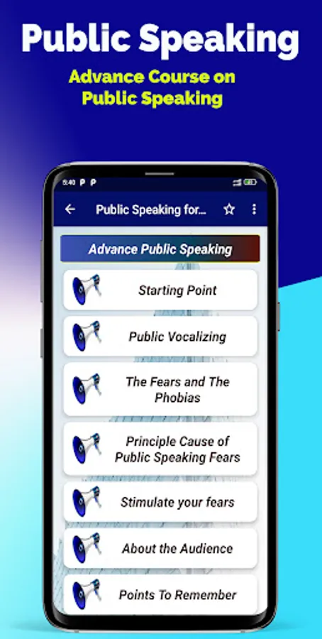 This public speaking course develops your public speaking skills regularly. You need to improve your habit and follow the rules and guidelines which are input in this public speaking English app.