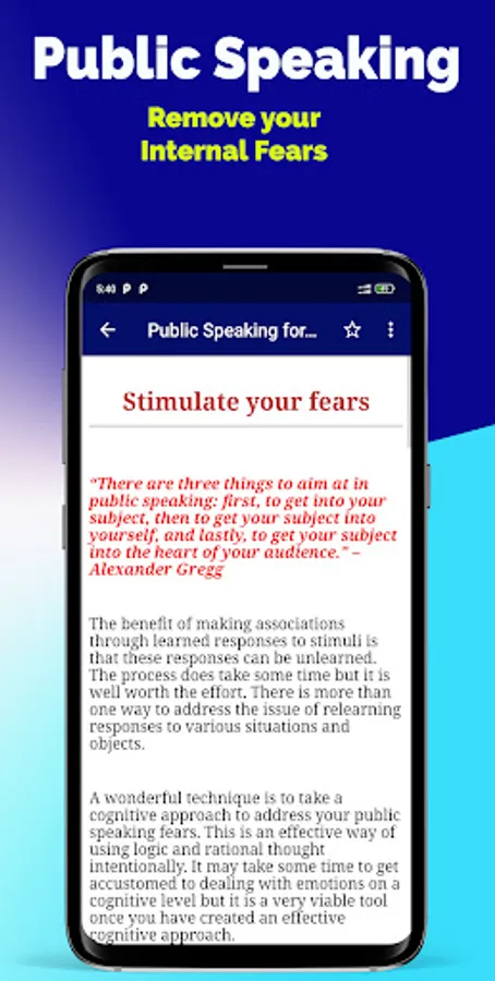 This public speaking app exposed your internal fear of public speaking through a lot of public speaking course practice. This public speaking skills offline book app includes all public speaking topics as a public speaking coach which can guide you to establish yourself as an impressive public speaker.