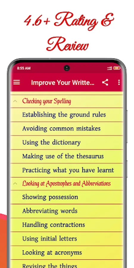This app Improve Your English Writing Skills is not English writing autocorrect app but a complete English writing book with English writing checking, English writing correction, English writing design, English e-mail writing, English writing letter, English writing rules, English writing mistakes, English writing tips, English writing test, English writing model, etc.