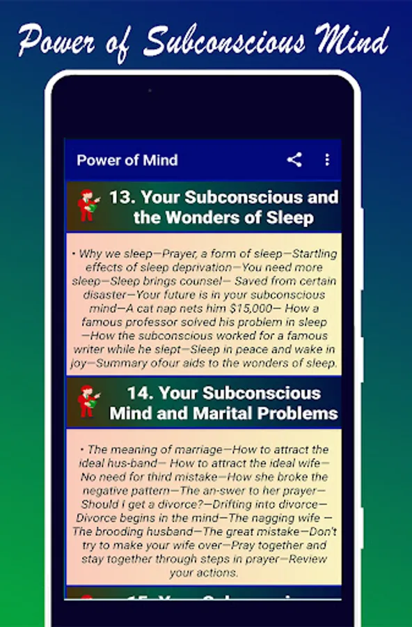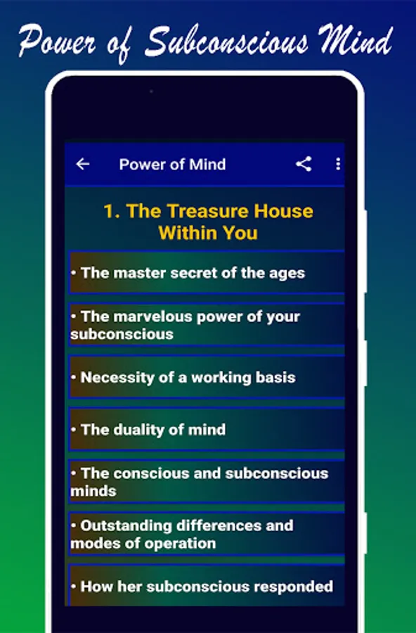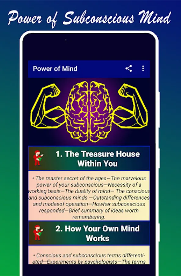In this power of the subconscious mind, the app determines and discusses your mind power secrets which are collected from the power of the conscious mind book.