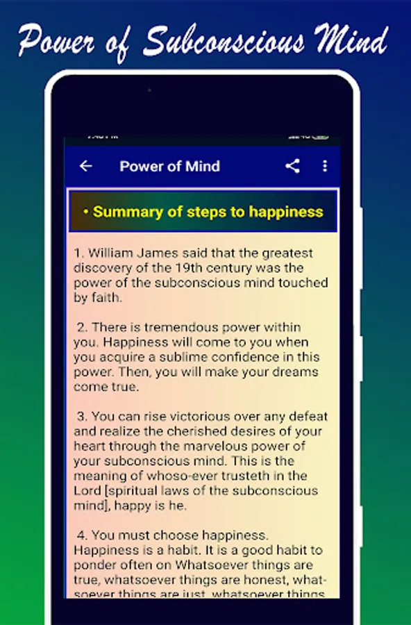 If you love this power of subconscious mind app, please put your valuable opinions and recommendations about this app.
