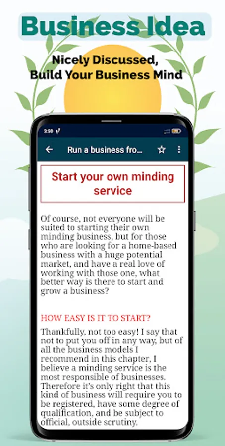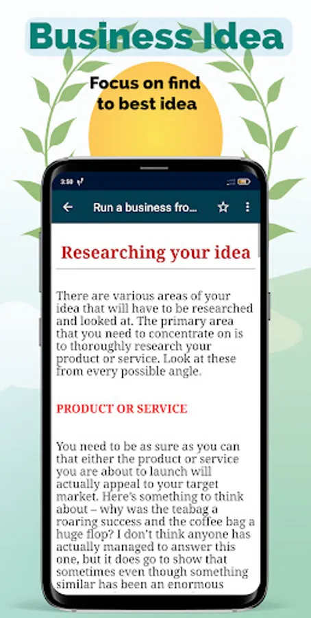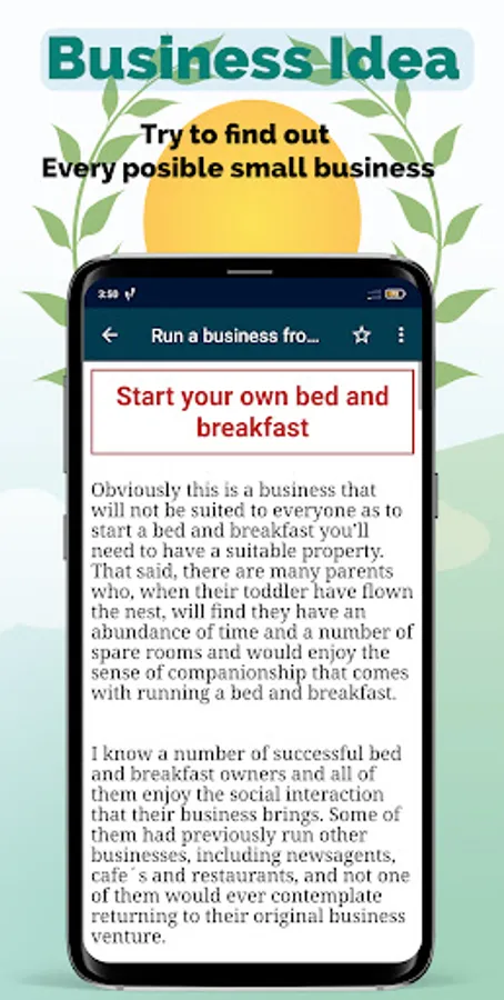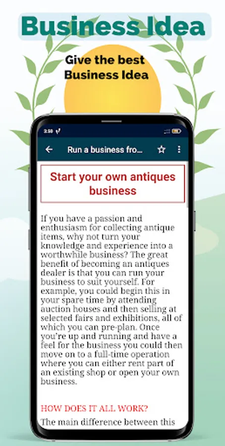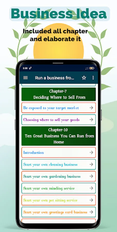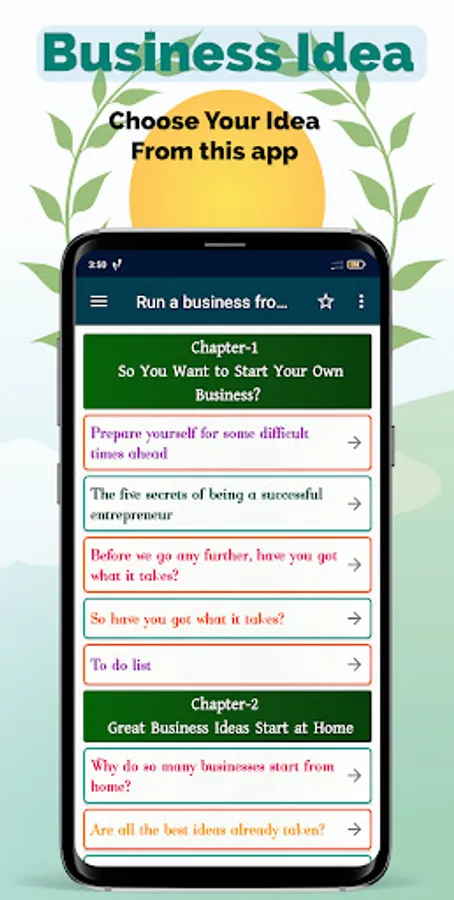 Making a business plan isn't easy without knowing how to start things according to your plan. That's why you need a business organizer who can suggest and give the best ideas on how to start your own business. If you are planning a business that can operate or start from your home? Or want to know small business ideas? Then this small business ideas app for you.