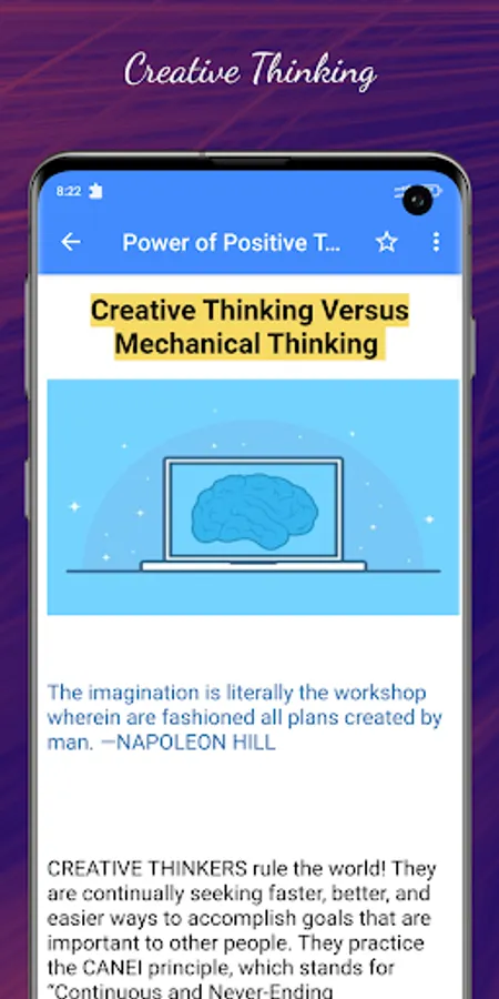 This positive thinking app teaches you how to think big and grow rich. Also, This app includes the best idea about thinking big growing rich, thinking fast and slow, thinking for a change & smart thinking strategies. Thinking about you is a computational thinking process but it can't always win. That's why we need design thinking capability in every situation.