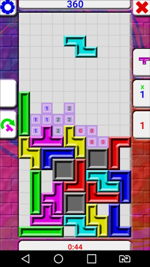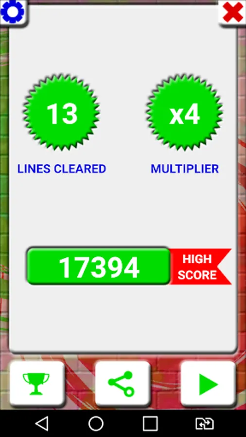 * The filling line brick: fullfil for 3 rows (top, bottom, and middle) and score points for you.