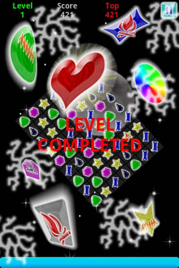 2: Match the jewels until the board transparency, the Jewels Heart will appear.