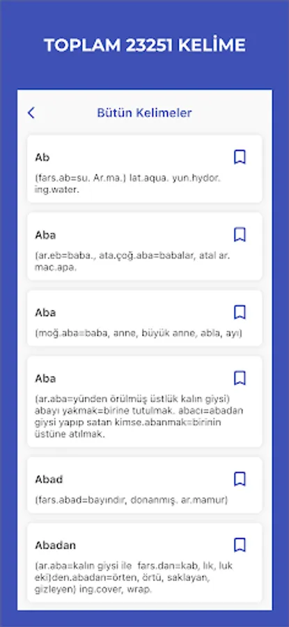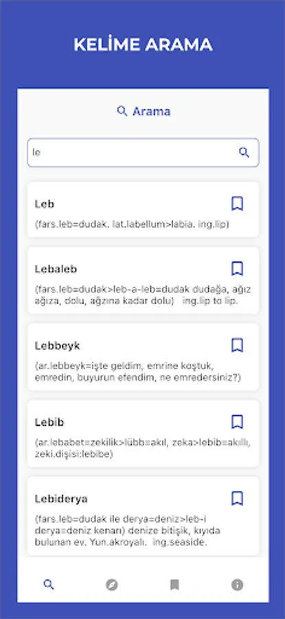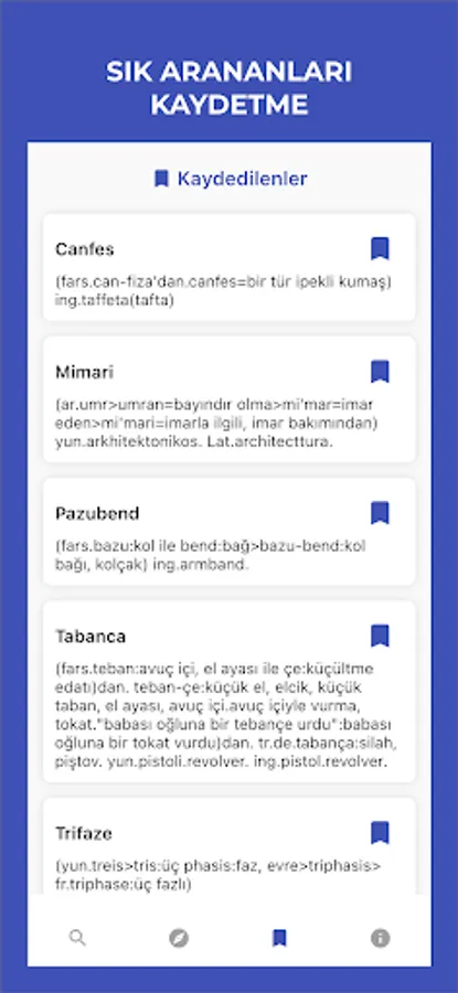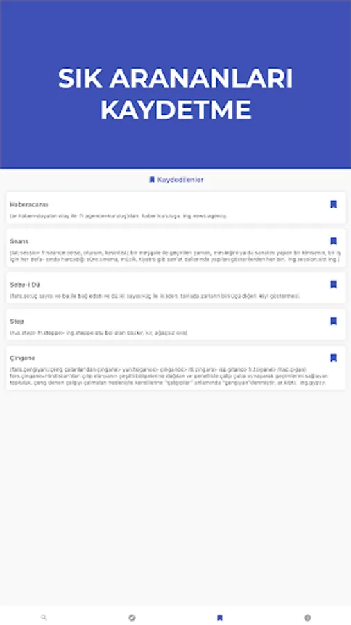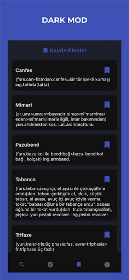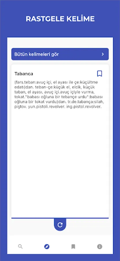 A Turkish Etymology Dictionary with word search, random word and saving selected words for later.