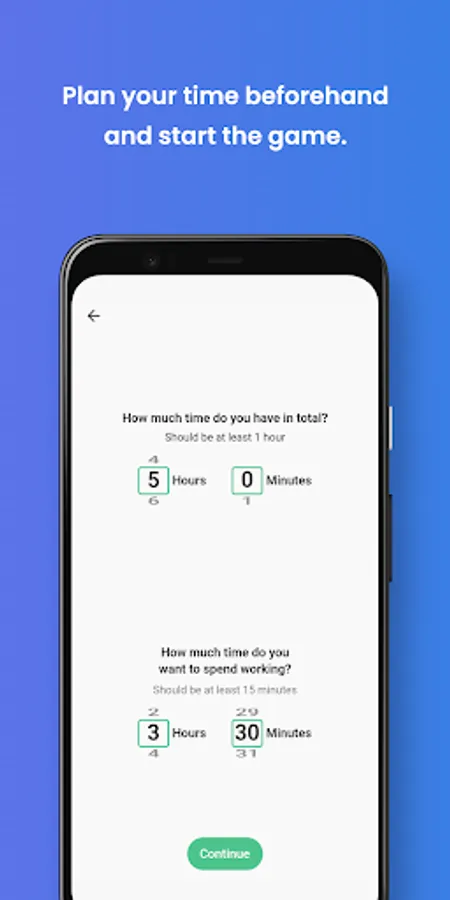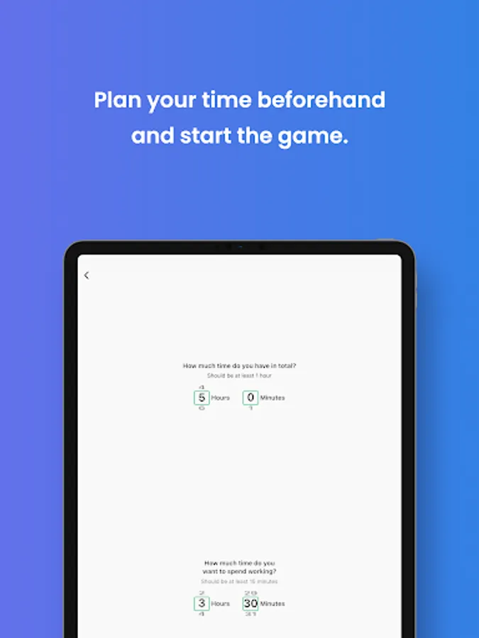 Time Game is a productivity game app, it works similar to a survivor game. You collect break time by working. Then you spend collected break times, but you should not consume all of it, because that is where the game is lost.
