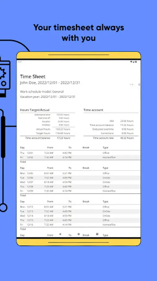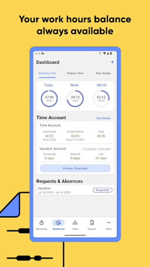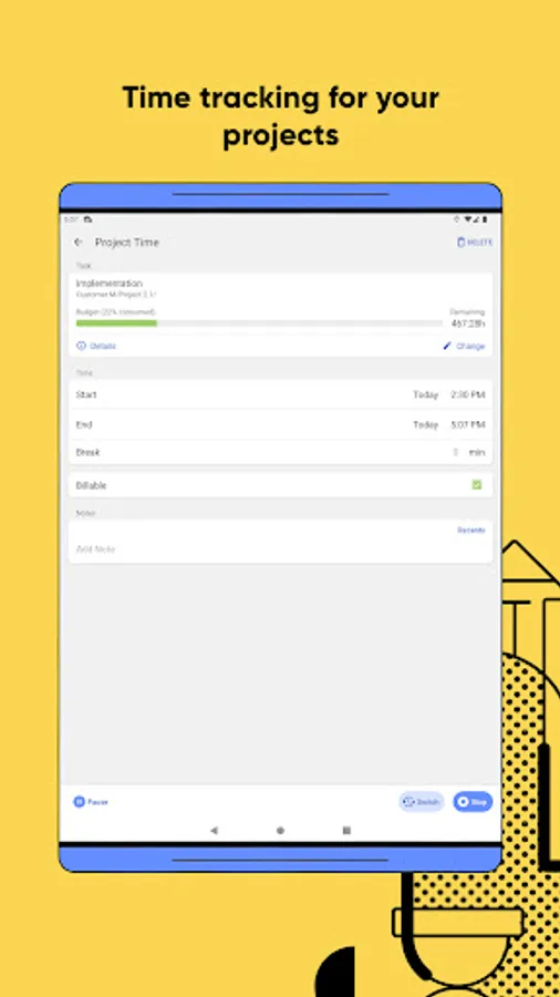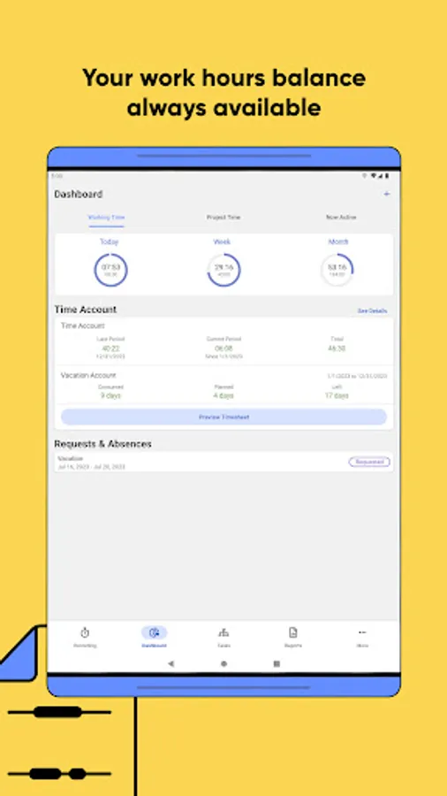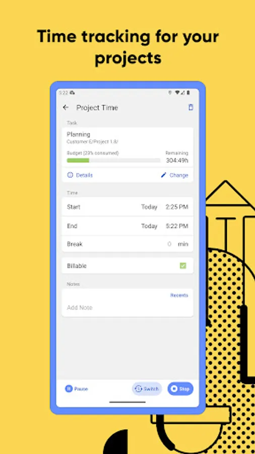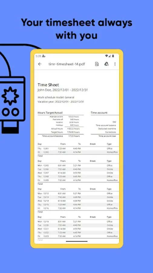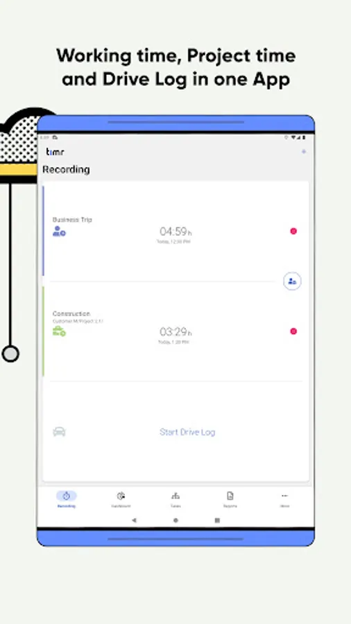 The timr time tracking app is a complete solution for recording working time, project time and business trips and mileage. Record your working and project hours precisely (also offline), get an overview of your employees and bill your customers faster.