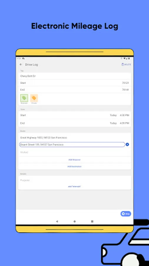 * Electronic mileage log with no cumbersome Excel spreadsheets - meets tax office
