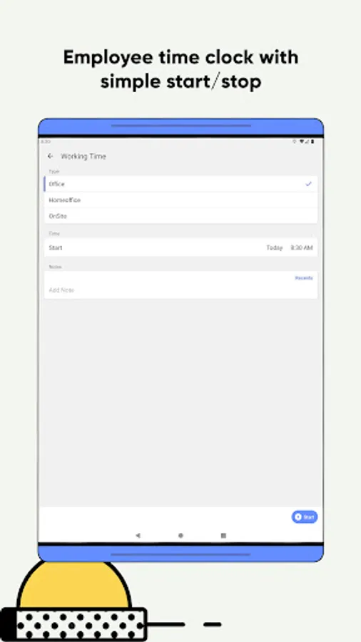 * Mobile time tracking with GPS location when starting and stopping can be used as proof