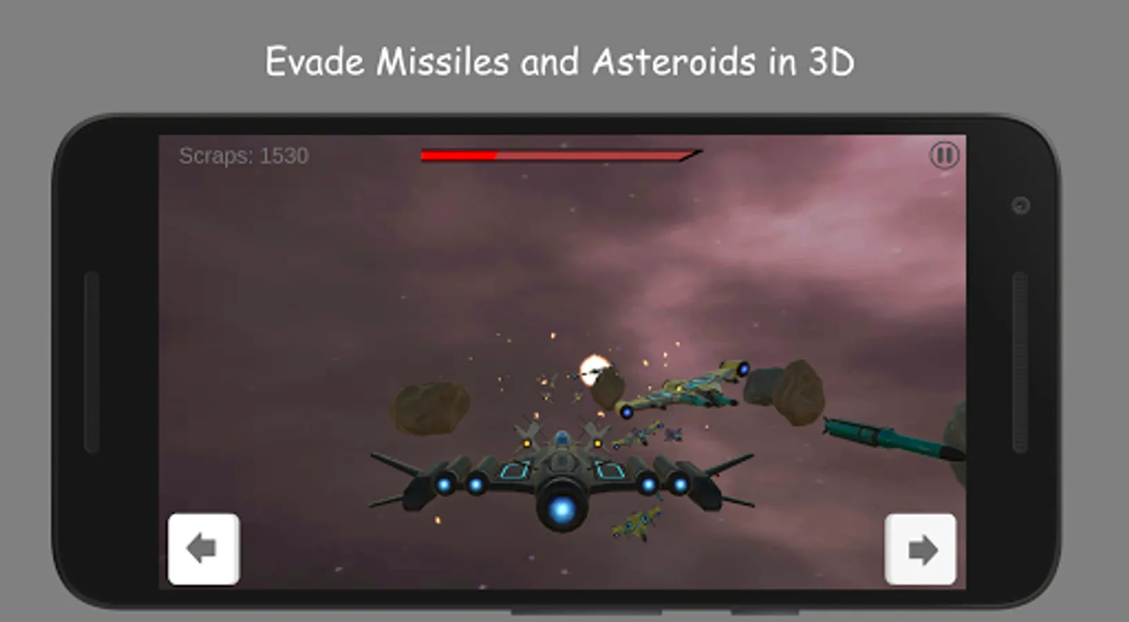Gets harder as you progress: action-packed with asteroids, missiles and fighter ships.
