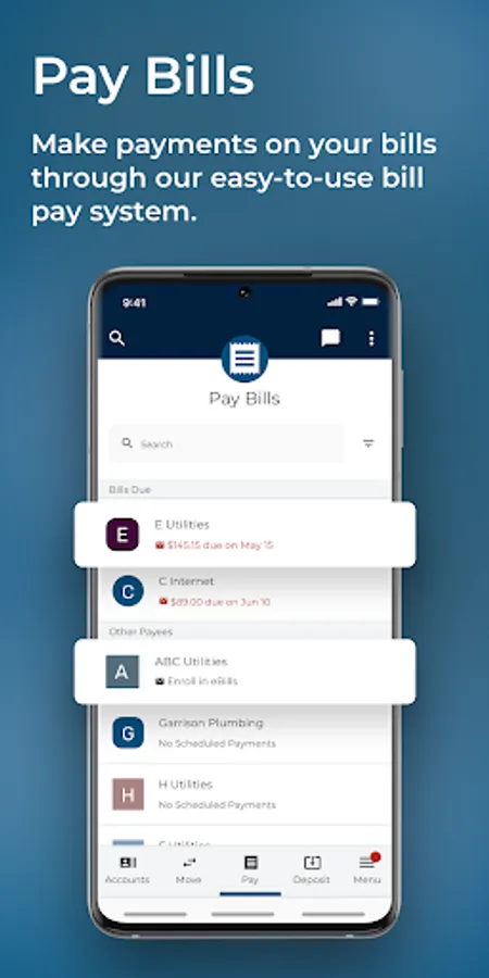 Bill Pay - Schedule or manually make payments on your bills through our easy-to-use bill pay system.