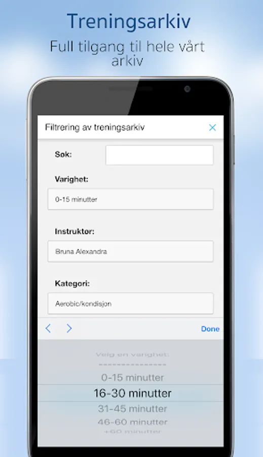In training archive you can search the instructor, length and category, you can retrieve fitness classes and see directly on your mobile, pad and TV.