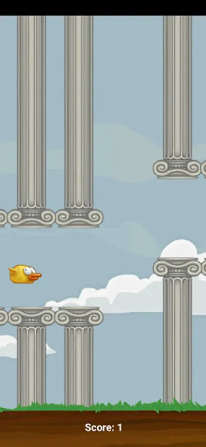 Level 1: classic gameplay. The player clicks on the screen to let the bird fly up, so that the bird flies through the gap between the two pipes. with each pass the player gets the gate 1 point.