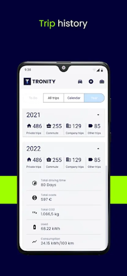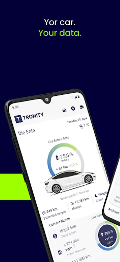 - Vehicle Insights: Consumption, range, battery status, CO2 balance - gain control over your EV data with TRONITY.