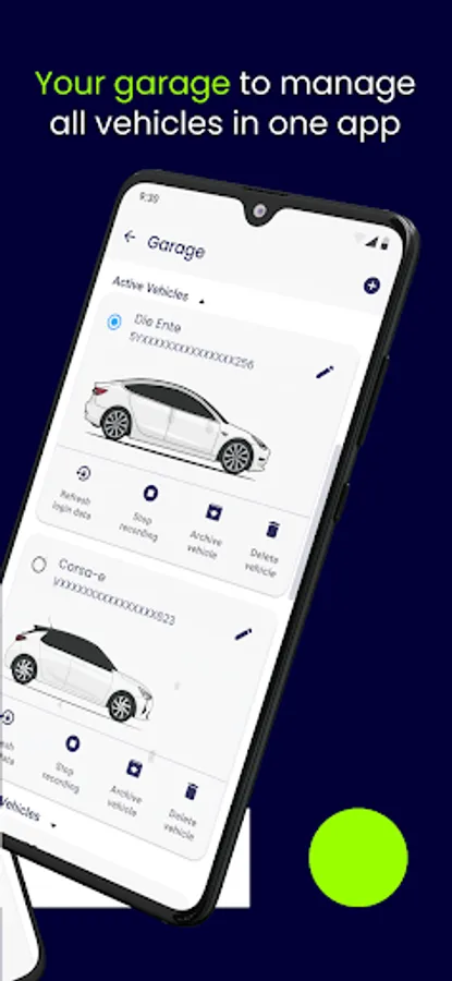- Your virtual garage: Here you can record and manage any number of vehicles from different manufacturers.