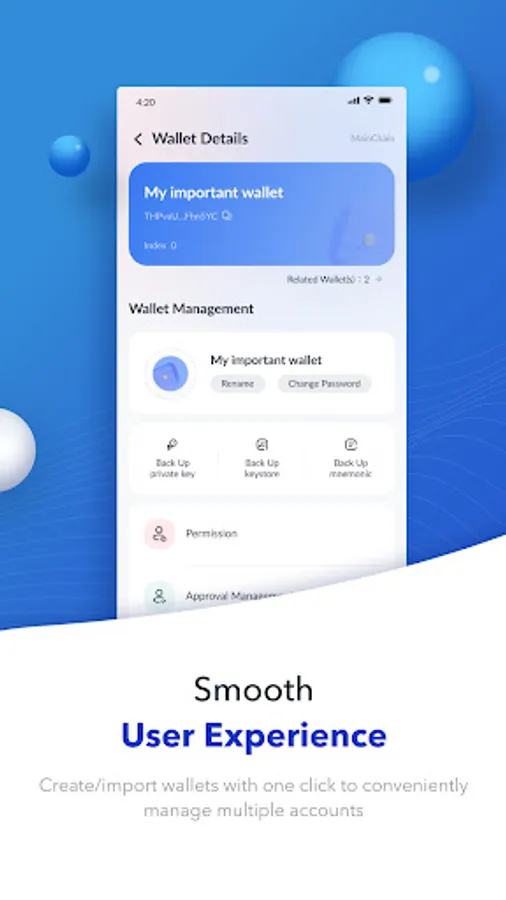 Simple steps and easy to use; Create/Import wallets with one click