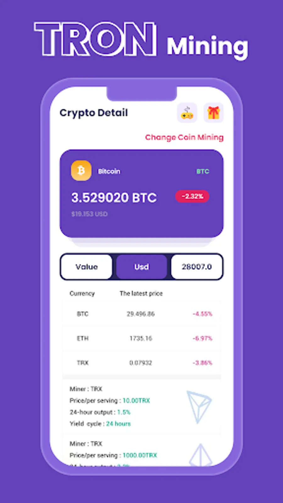 TRON Mining Tron Info App cloud mining at a low cost. Cloud mining is a low-cost and efficient way to mine the TRX coin. You may easily join in blockchain trading with a modest amount of money.