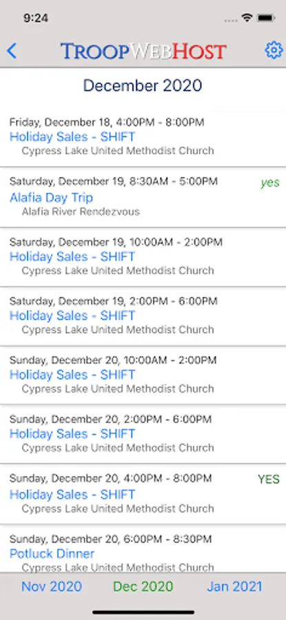 The TroopWebHost mobile app provides access to the features of the TroopWebHost website that are of greatest use to scouts, parents, and camping leaders. View your member directory and calendar, sign up for events, and take attendance.