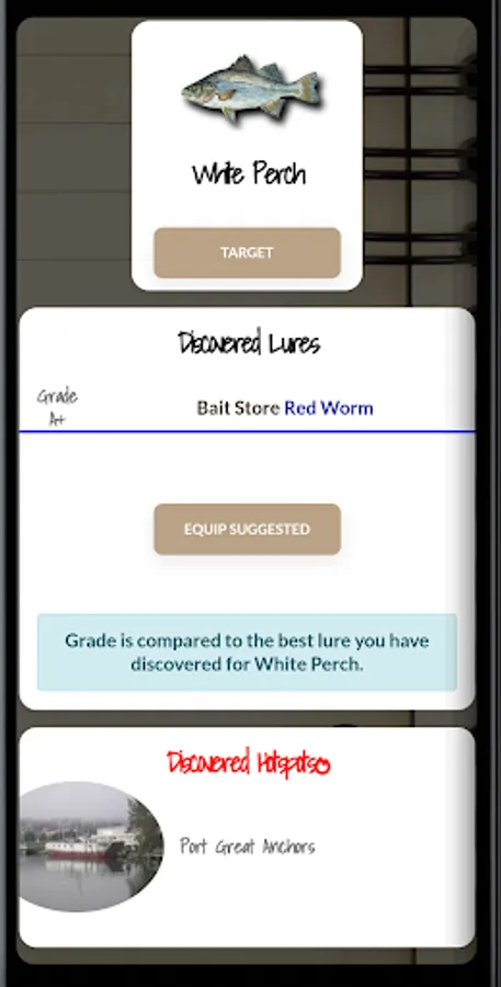 * Knowledge system keeps track of your discoveries both for what lures fish bite and where the fish are found.